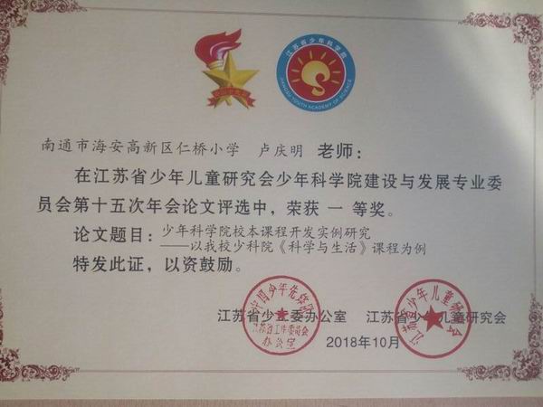 2018年,仁桥小学以社团活动课程为抓手,实现校本课程研发的提档升级。围绕准确定位课程性质,合理选择课程目标,全面落实阶段要求,精密酝酿整体架构,精致灵活转变延伸,体验改进实施效能,深度反思课程瑕疵,经过精选内容、取舍项目、修编文字、验证实用、实践升级,达到图文并茂、技能同步,为社团活动开展提供载体。10月,修订《科学与生活》特色课程,至此,实现了国家、地方、校本三系课程体系全覆盖。科技社团获评县、市两级优秀社团。11月,校本课程建设展示活动获得质量评估专家组一致好评。