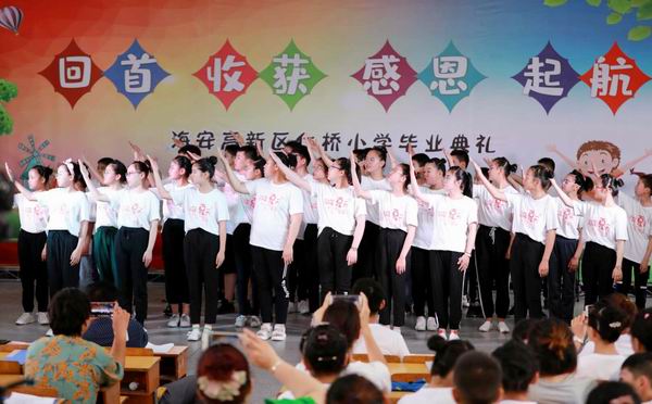 6月29日下午,海安高新区仁桥小学多功能厅内时而歌声激昂,时而喃语低传,悠扬的音乐,眷恋的师生,诚意的家长,敦敦的温情……仁桥小学2019届小学毕业典礼如约举行。