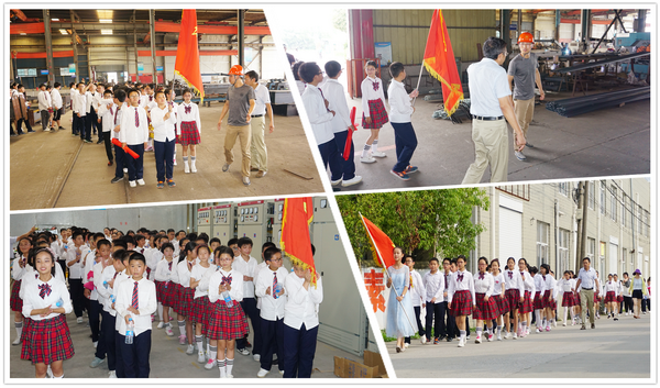 尔后,学生们先后来到江苏恒泽安装工程股份有限公司和南通宁海机械电器有限公司参观体验,这两家企业都是仁桥小学的校外实践基地,也是海安城南工业园区内比较著名的明星企业,前者年产值过亿,后者为许多大中型企业进行配套供给,两者既为仁桥的经济发展做出了贡献,更为周边人员的就业提供了有力的帮助。江苏恒泽安装工程股份有限公司董事长王忠泽和生产厂长史厂长、宁海机械电器有限公司董事长刘佩来及厂办主任任主任亲自接待了学生,并带领学生参观厂区,向学生介绍企业生产线等情况,鼓励学生长大后用所学知识回馈社会,造福家乡。