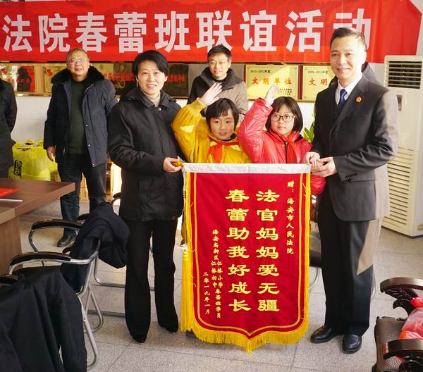 “莫道浮云能蔽日,严冬过尽绽春蕾”,一时的困境,不应该阻止前进的脚步,自2012年起,海安人民法院就在仁桥小学、仁桥初中设立了“春蕾班”,资助那些家庭陷于困境,生活困顿,无法全方面保证正常学习生活的学生,以帮助他们顺利完成学业,绽放春蕾。