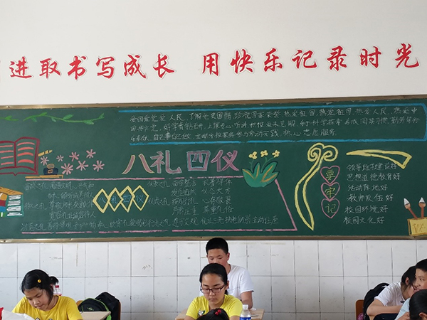 我们班充分利用班会课宣讲“八礼四仪”,将每一条具体要求有机结合在每一周的“德善礼仪”养成训练之中,在晨会课上落实教育,并设立文明礼仪志愿岗进行督查提醒,帮助学生养成良好的文明礼仪习惯;大家利用每天“德善诵读”时间,学习经典《弟子规》、《三字经》等,从中华传统文化中挖掘文明礼仪教育元素;做手抄报,出黑板报,引领学生做一个具有“华夏根基、国际视野、领袖胸襟、平民情怀”的合格小公民。