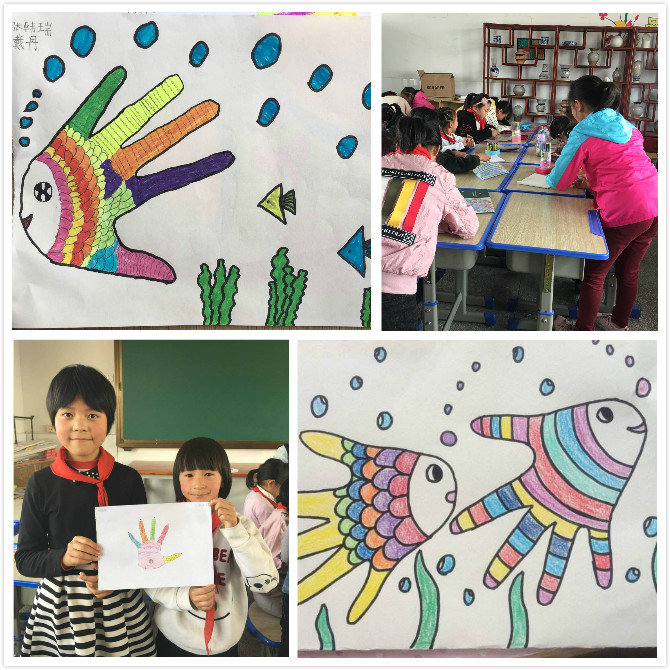 孩子们乐在其中,低年级的小朋友学习的积极性也很高,都很认真的跟着高年级的姐姐们学习绘画的方法与技巧,并且一起开动脑筋,充分的发挥自己的想象力,创作出一幅幅精美的作品。