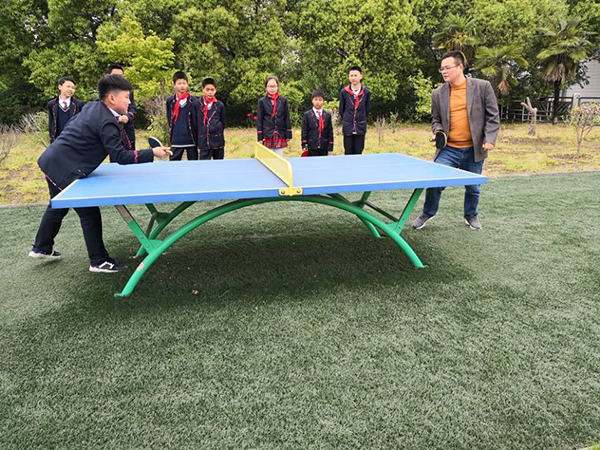 社团活动课老师先给我教发球,这可是个看起来容易做起来难的动作。首先要把球抛起来,还要把拍子拿平,拿歪了会打飞,而且连眼睛也要配合,否则不打中球。费了九牛二虎之力,我终于学会了发球。