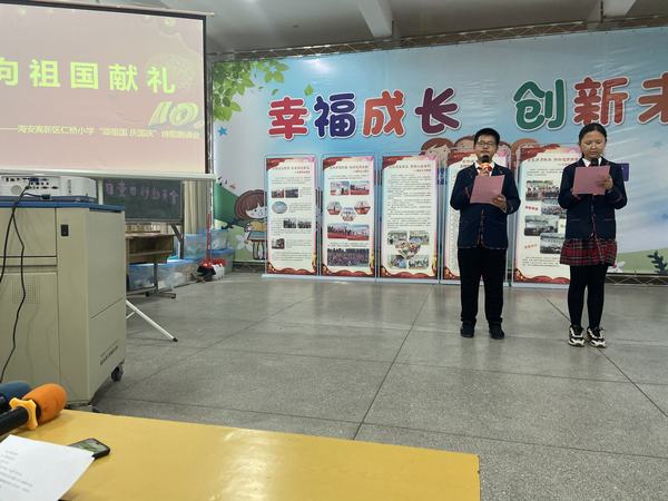 “我爱你,中国!我爱你上下五千年,生生不息的薪火;我爱你纵横千万里,绵绵不断的山河!”9月30日下午,海安高新区仁桥小学举行了一场别开生面“诵祖国 庆国庆”诗歌朗诵会,同学们或慷慨激昂,或款款情深,或满怀憧憬,抒发出对伟大祖国的热爱之情。多功能教室里掌声雷动,一次又一次把活动推向高潮。