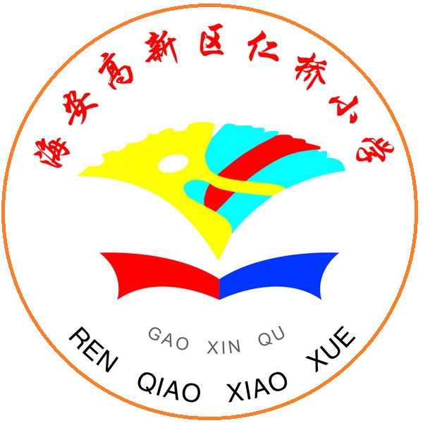 学校标识作为学校的窗口,显现深厚的文化底蕴,沉重的核心价值,前卫的办学理念,程顥云:“仁者以天地万物为一体。”,基于此点,我校的学校标识分为两部分,一是校徽,由两片代表仁桥地域特点的银杏叶构成的“仁小”首字母“R”与“X”抽象变形而来,R中间的一个椭圆形表示一个新生命的诞生,R又抽象变形为K,与X组合成“科学”的首字母,表明仁小的办学特色,下面打开的书页与外框的圆形表示“书香校园”,R与X的交叉表示如海运河与栟茶运河交汇,黄色代表成熟和收获,绿色代表生命与健康,红色代表血液与热情,蓝色代表朝气蓬勃,积极向上,紫色代表稳重与前程。上半图形象一把打开得扇子,又像一个漏斗,整个设计融合百今之韵,集百家之道,显中庸之魂,简洁、大方、朴素、自然,写意传神,浑然天成。二是吉祥物“赢赢”取意银杏的银,与学校校徽一脉相承,运用卡通造型,以银杏叶为造型,大脑袋代表聪明与智慧,躯干以心支撑,表明拥有一颗爱心、孝心、恒心等等,大拇指竖起来表示我能行,我最棒,四指弯曲紧握与大拇指表示团结一致,奋发向上,整个构图显现一种“勇者不败,仁者无敌,智者勇胜”,充满朝气与活力,代表健康、快乐和幸福。,