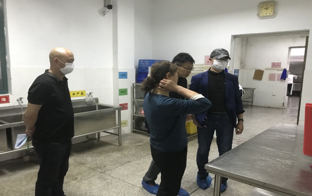 检查组详细询问了食材质量、价格以及供应商服务情况,对学生就餐、校领导陪餐等情况进行了深入了解。接着,检查组实地查看了食堂的洗消间、烹饪间、备餐间等,了解食堂工作人员每日的操作流程,并对备餐间食品的摆放、物品留样要求和消毒间的使用情况等进行了详细的检查。