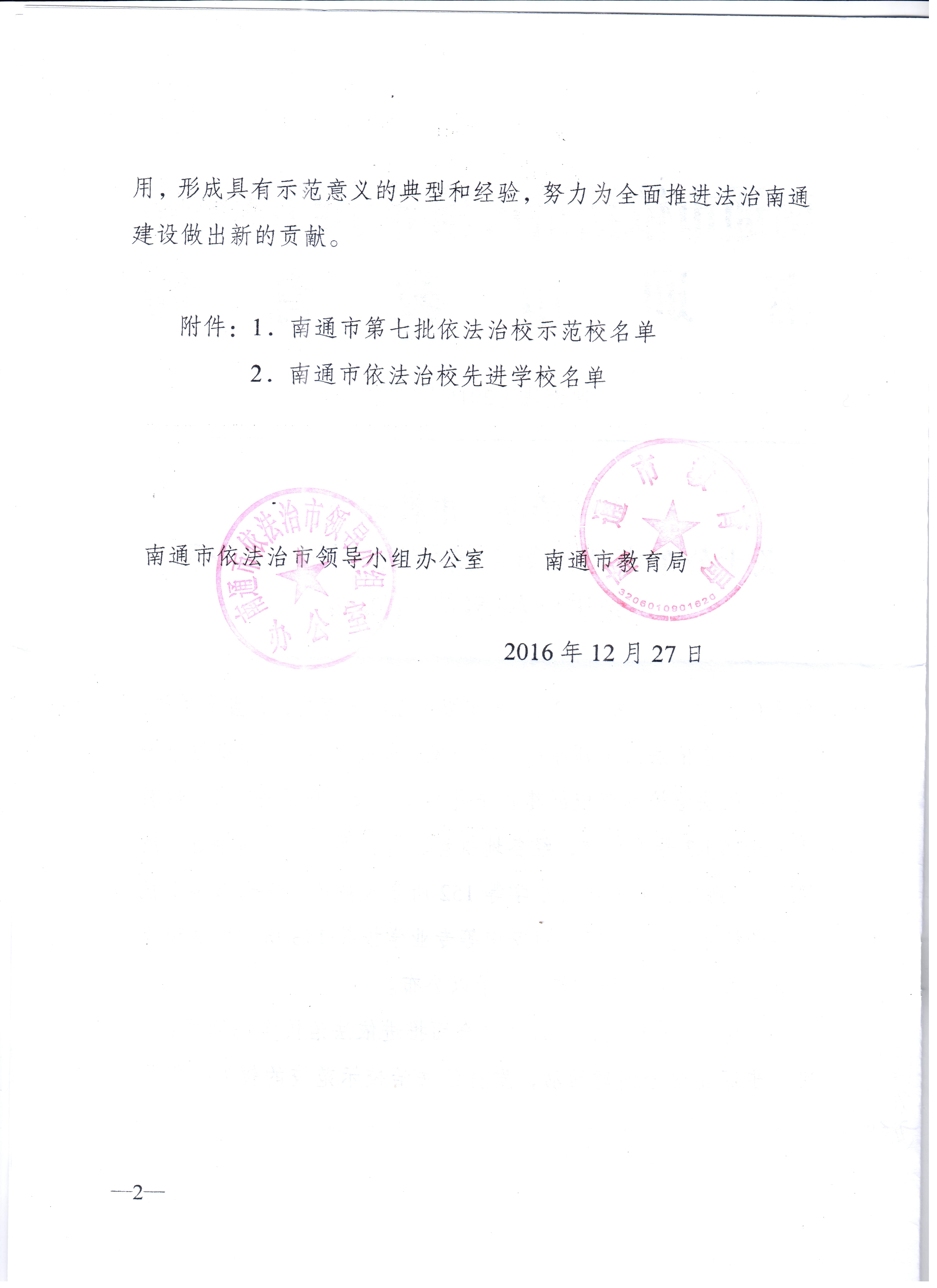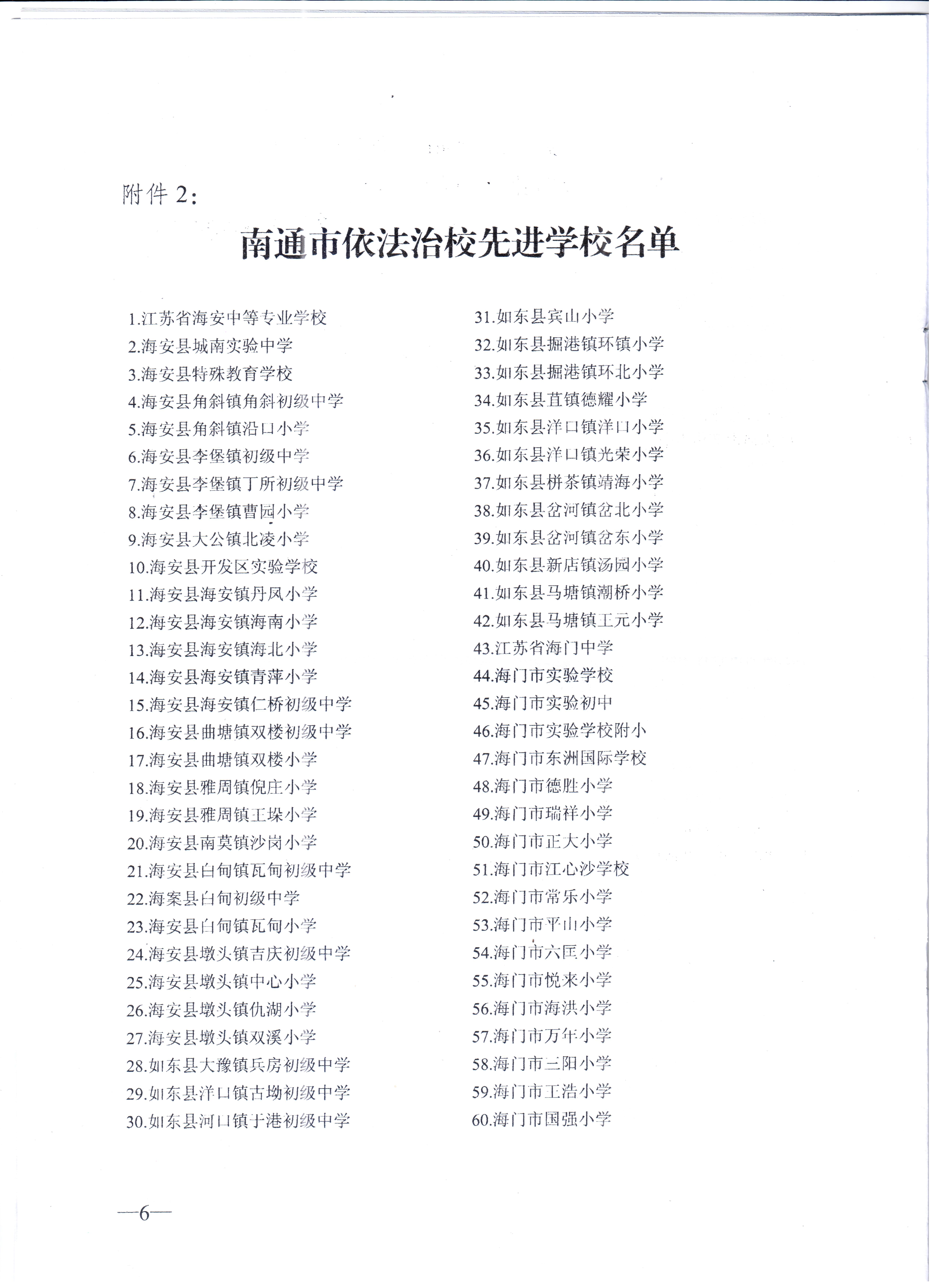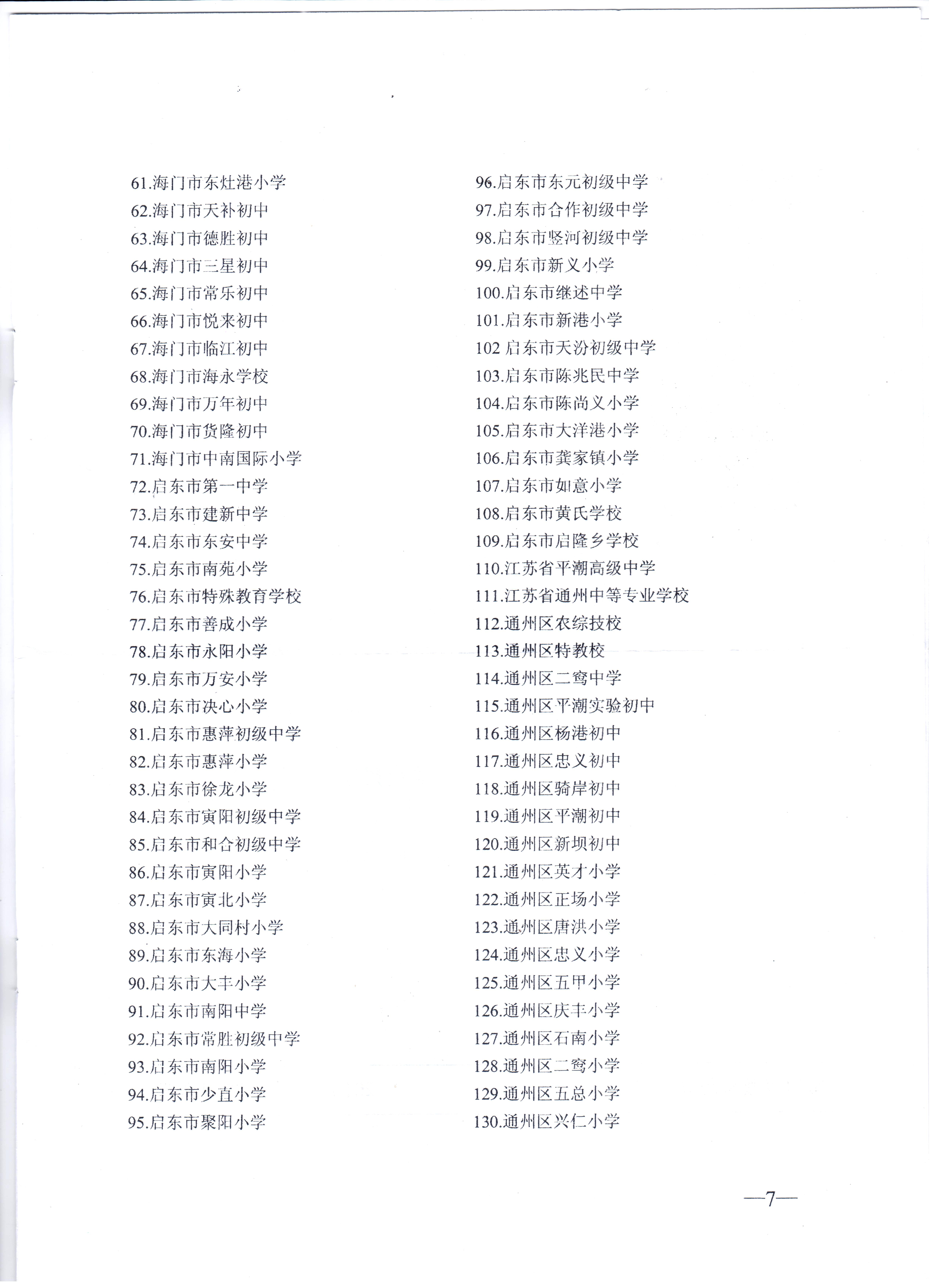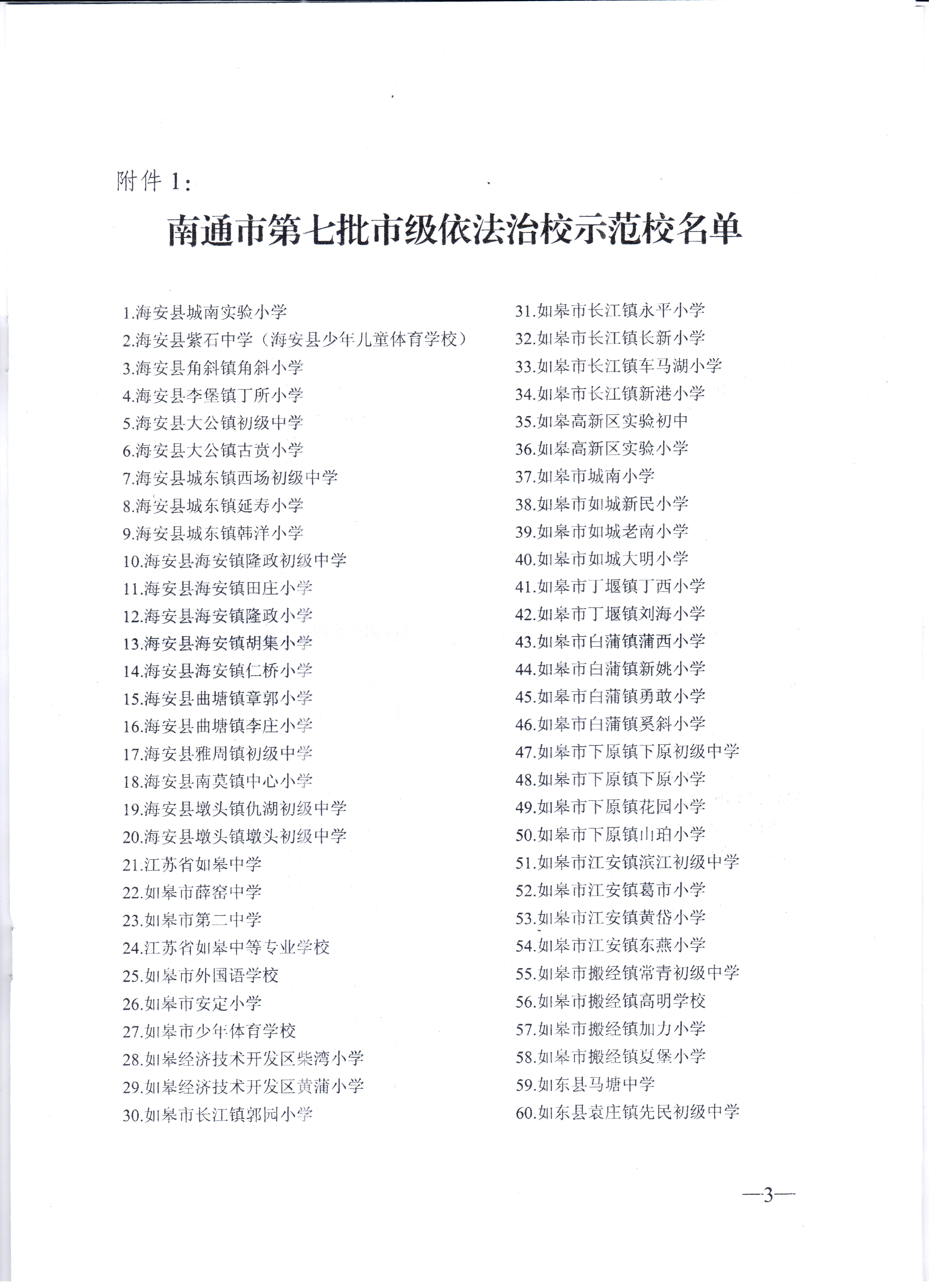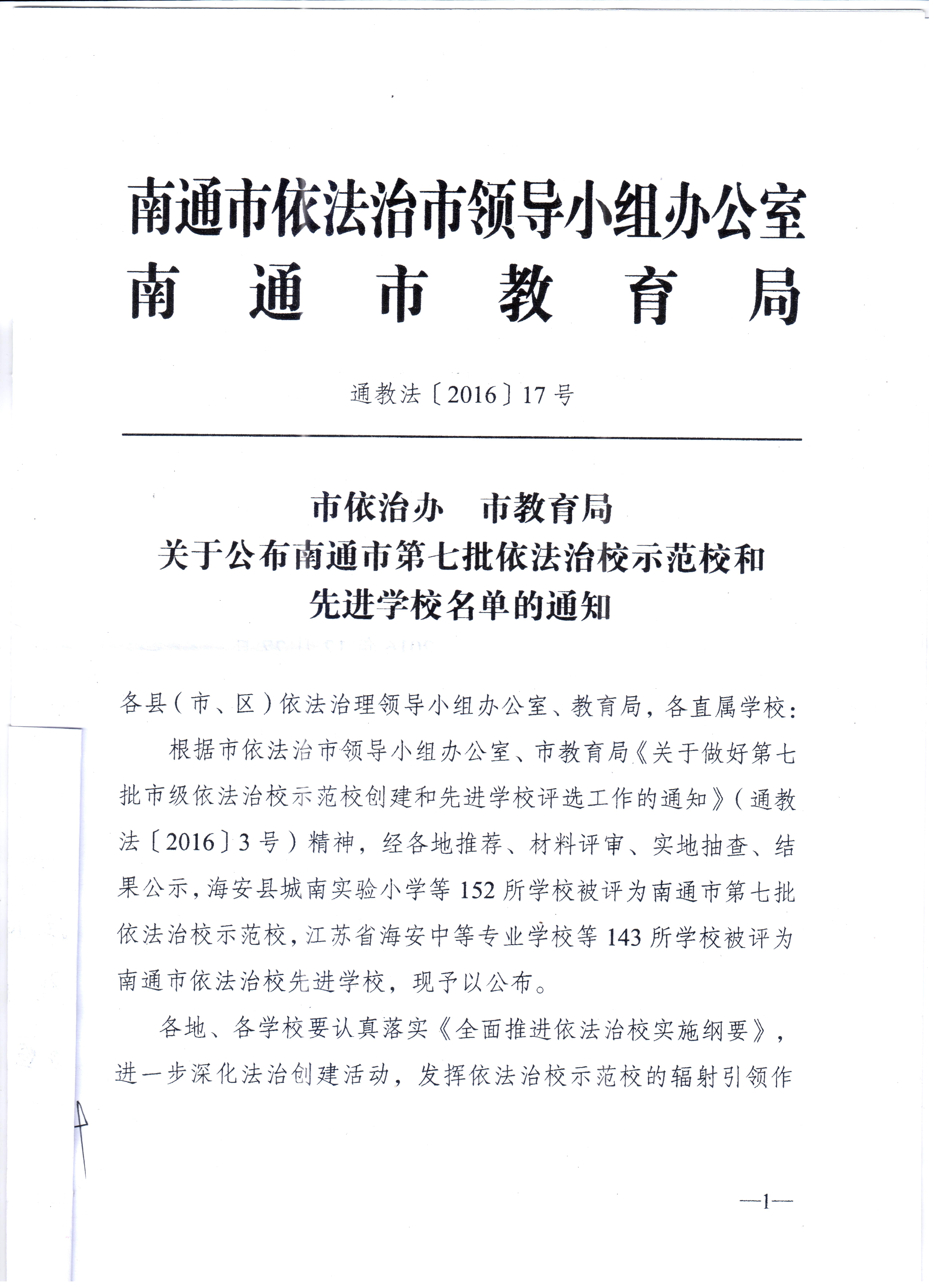 关于公布南通市第七批依法治校示范校和先进学校名单的通知