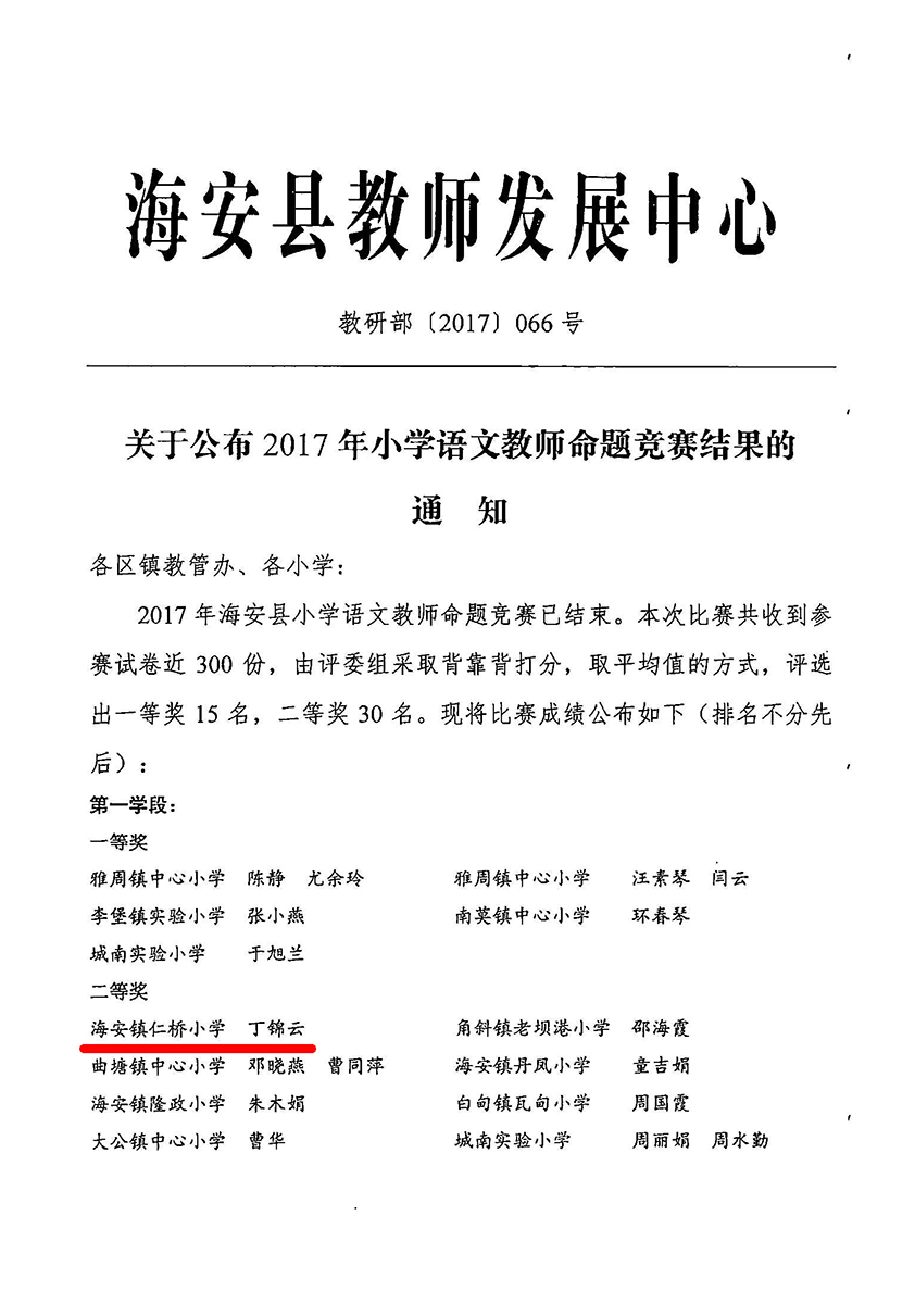 教研部066号关于公布小学语文教师命题竞赛结果的通知