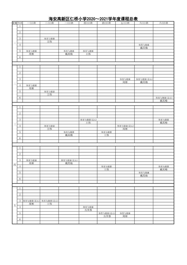 海安高新区仁桥小学2020-2021学年度体育与健康课程总表 来源: 发布时间:2021-07-16 00:00:00 浏览次数: 次 【字体:小 大】 海安高新区仁桥小学2020-2021学年度体育与健康课程总表 分享到: 【打印正文】