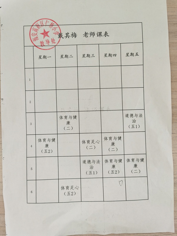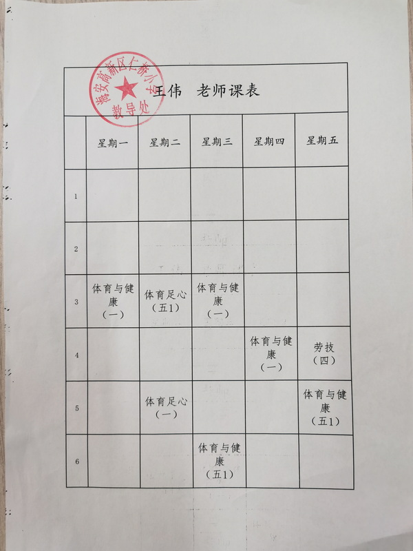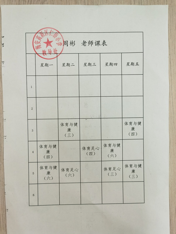 仁桥小学体育教师课程安排