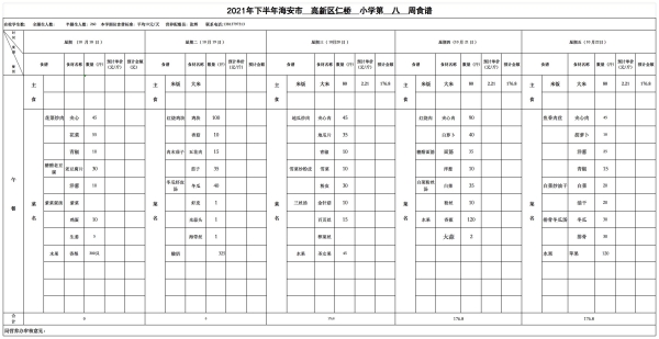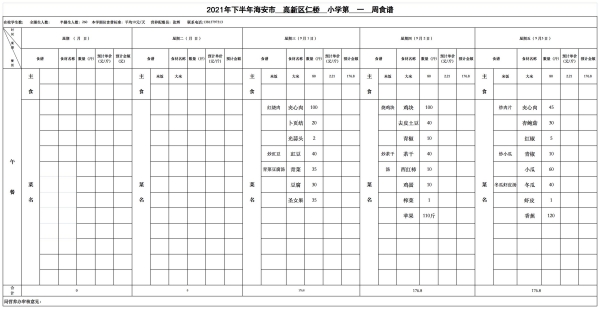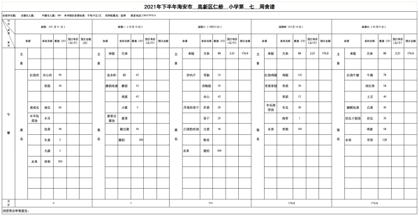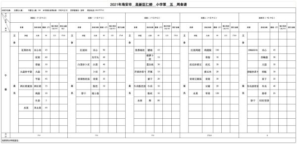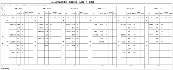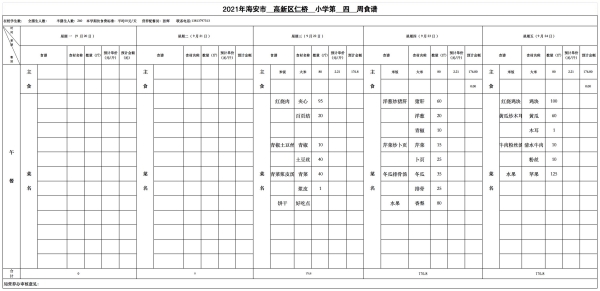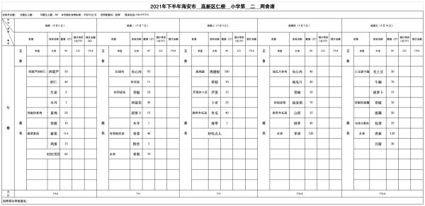 仁桥小学学生食堂新学期食谱