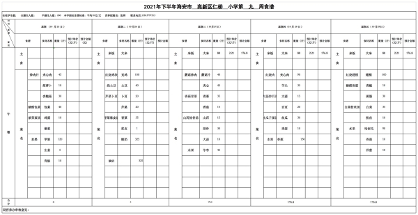 学校食堂新学期食谱