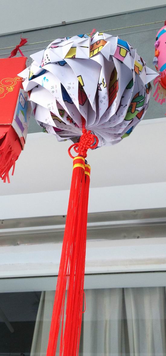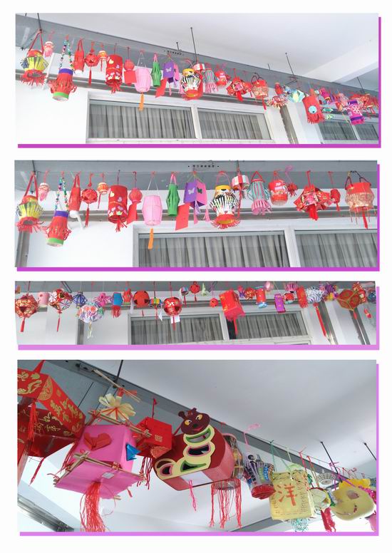 灯笼,是中国古代劳动人民的聪明才智,随着时代的发展,灯笼逐渐失去了它的照明功能,转而成为节日庆典、喜事临门的氛围装饰要素,为了弘扬民族文化、培养创新精神、锻炼动手能力,仁桥小学特在本届校园艺术节活动中开设了“做个灯笼过佳节”的环节,学生们通过观摩中国传统灯笼作品,发挥自己的想像,巧妙利用压岁钱袋、空饮料瓶、彩纸、甚至是挖去果肉的柚子壳等材料,精心设计、精细操作,做出了一个个精致独特、色彩斑斓的小“灯笼”,学校统一将学生的作品收集展示于教室走廊内,既增添了校园色彩,带给学生美的享受,更给全体参与制作的学生带来成就感。