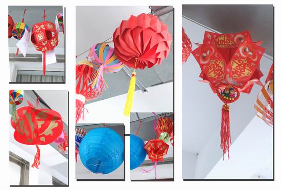 喜庆的红,灿烂的黄,宽广的蓝,缤纷的彩……五颜六色、形状各异的灯笼挂满了仁桥小学的走廊,原来,该校校园艺术节上的“做个灯笼过佳节”活动正在举行。