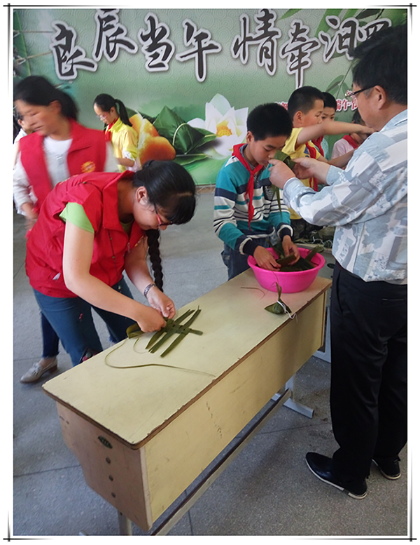活动中,学生纷纷以诗歌表达对诗人的怀念,有的咀嚼《离骚》、有的吟诵《端午组诗》,有的慨叹《今又端午》,还有的以优美的舞姿,嘹亮的歌喉,展示自己的情怀……“端午临中夏,时清日复长。”粽子飘香,古风流长,为进一步引导广大少先队员了解和感受中华传统节日文化,更好地继承和弘扬中华优秀传统美德。活动结束,学生们还进行了热闹的包粽子比赛,并邀请仁桥街道办的领导一起助阵!