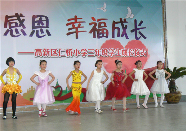 成长仪式由“忆今昔,快乐成长”、“沐阳光,心怀感恩”、“展未来,放飞梦想”三个篇章组成。在成长长廊展示后,仁桥小学校长刘斌首先给孩子们送上了节日的祝福,对孩子们的成长提出了殷切的希望。接着,家长和教师的诗朗诵《很高兴遇到了你》首先将活动气氛拉上了高潮。