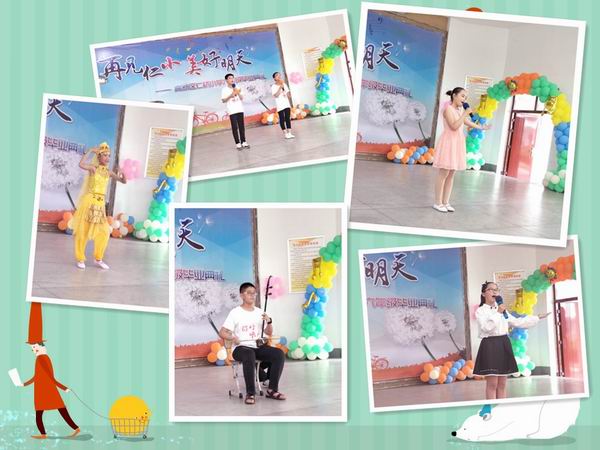 学校送来祝福;老师带来关切;家长发来祝贺;同学互赠激励。毕业典礼上,同学们表演了精心准备的节目,老师欢快的参与互动,家长代表也积极地参与进来,这一刻,老师亦是朋友,这一刻,家长已然释怀,时间中流淌着欢乐,空间里荡漾着激情,大家互道珍重,共待明天,所有的同学在毕业签名板上签下小学生活里的最后一次签名,在记忆的深处记下走过的小学时光。