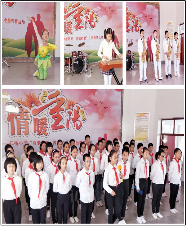 重阳节当天,老同志们早早地就来到了活动地点,他们中有的已八十多岁高龄,有的甚至还坐着轮椅车,更有行动不便的是子女搀扶着陪同着。老同志们好多好久未见,今日得见,分外高兴,他们三三两两聚在一起,畅叙往事,共看校园,回顾昔日工作的艰辛,笑看今日校园的靓丽;闲谈现今生活的点滴,品味仁桥教育的业绩,两学校的校长对学校近些年的发展作了简要的介绍,仁桥小学的学生艺术社团为老前辈们献上了精彩的节目。看着昔日的战友,瞧着今日的校园,欣赏着精彩的节目,老同志们感慨不已,直说现今社会好。