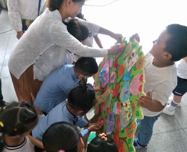 最后,家长和孩子们兴高采烈地来到舞台中央的背景幕前,将亲子制作的心愿卡贴在心愿树上。家长们还纷纷拍照留念,记录下这难忘的一刻。