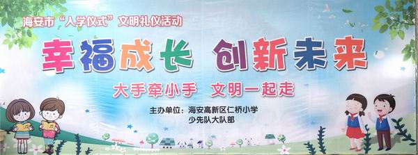 9月是一个多彩的季节,也是一个丰硕的季节!带着秋的喜悦,9月14日下午,海安高新区仁桥小学迎来了一年级新生的入学仪式, 45名一年级新生家长也应邀来到现场,见证了孩子们这一难忘的时刻。
