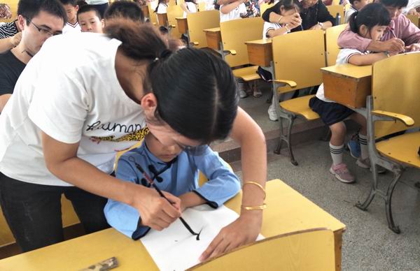“人生聪明识字始”,写字识字是学习文化的第一步。家长和孩子一起,大手握小手,帮助孩子们写出“人”字。进学校学习首先要学会做人,做人首先就必须堂堂正正,正地立身。