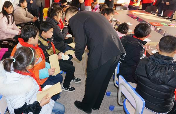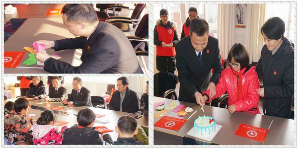 17号当天,“法官妈妈”们又为每个“春蕾班”学员带来了新衣新鞋,并给每人发放了压岁红包,与孩子们一起分享新年蛋糕,畅谈新年愿望,“春蕾班”的孩子们为“法官妈妈”们献上自己做的心愿祝福卡,并向“法官妈妈”们赠送了锦旗“法官妈妈爱无疆春蕾助我好成长”。