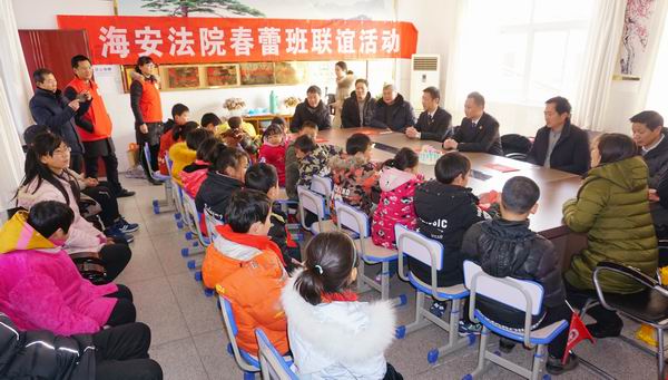117日,多日阴雨天气终于放晴,下午,海安市人民法院代表在院长任智峰带领下,来到高新区仁桥小学,为仁桥小学、仁桥初中“春蕾班”学员带来了冬日的暖阳。