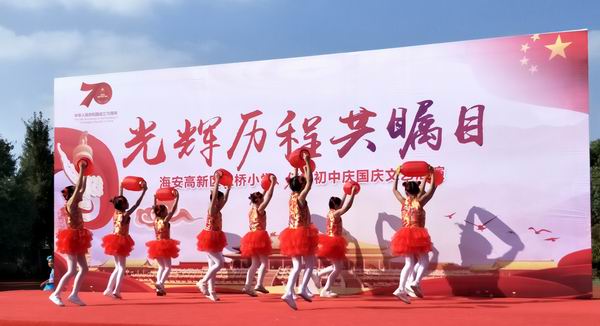 9月30日下午,高新区仁桥小学操场上欢歌嘹亮曼舞回转,仁桥小学、仁桥初中联合举办的“光辉历程共瞩目”庆国庆文艺演出如约举行。
