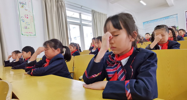 10月29日,仁桥小学举行了一至六年级学生全员参与的眼保健操比赛。评委老师针对学生做眼保健操时穴位是否准确、节拍是否正确进行打分,并对个别学生的错误动作进行了纠正。学校将每天两次眼保健操的完成情况列入文明班级评比的内容,使之成为预防青少年近视的有效手段。