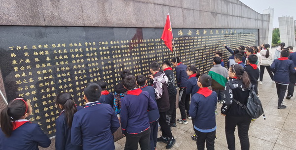 4月1日中午,天空仍不时飘下零星雨丝,海安高新区仁桥小学组织的祭扫烈士陵园活动如期开展。系上红领巾,穿上雨衣,师生们在学校校长刘斌的带领下徒步向海安高新区烈士陵园进发,祭扫烈士陵园,缅怀为创造今天的幸福生活而英勇献身的先烈们。