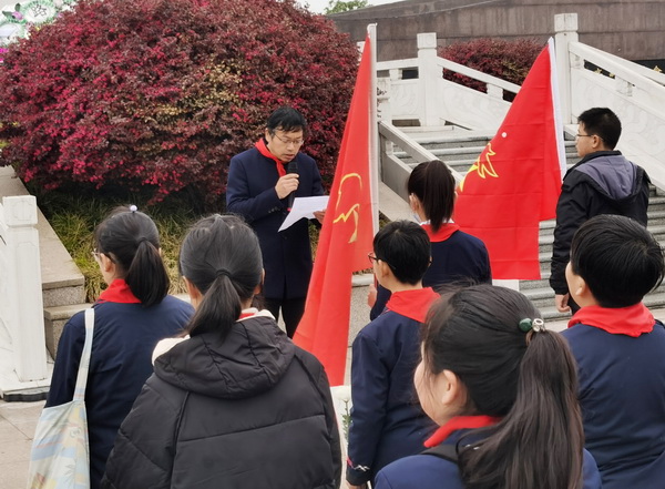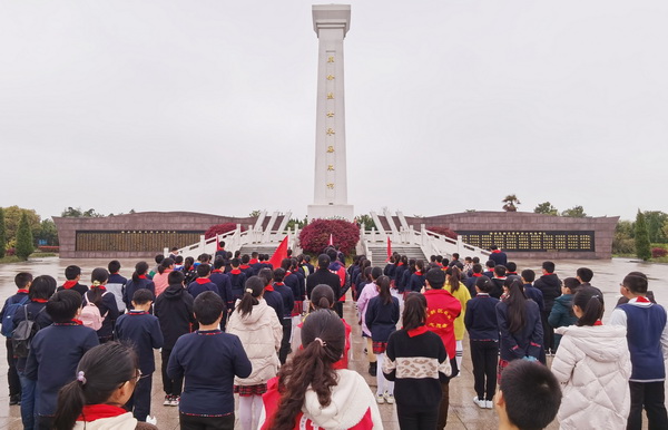 细雨菲菲,草木低垂。在雄伟的革命烈士纪念碑前,少先队员们默哀追思,祭扫献花,生动感人的烈士故事仿佛把他们带到了战火纷飞的年代,激发了他们的爱国情、报国志,他们面向革命烈士纪念碑发出自己的铿锵誓言,立志传承红色基因,争做新时代好队员。