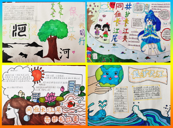 学校发放《倡议书》,呼吁家长和孩子一起保护河流,维护良好的生态环境,建设美好家园;开展创意手抄报和征文活动,让学生了解保护长江的重要意义,知道自己应该从那些方面去做,并体验到了创作的乐趣。