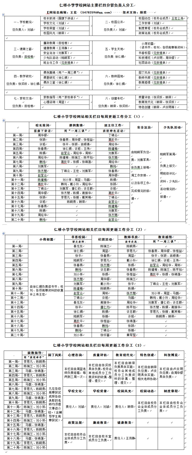 网站栏目分管及分工